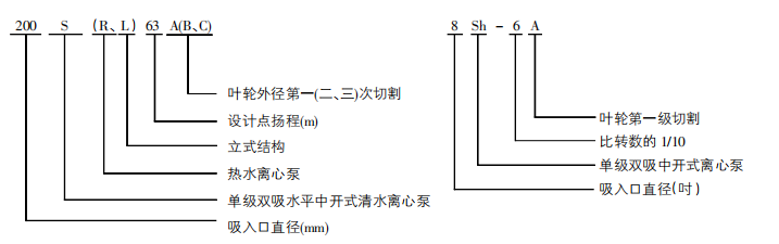 S、Sh型泵主要由泵體、泵蓋、軸承、轉子等零部件組成。該泵為單級雙吸葉輪,泵體為水平中開。泵的吸入管和排出管均在泵軸中心線下方呈水平方向,并與泵體鑄在一起,泵體與泵蓋的分開面在軸的中心面上,無須拆卸管路及電動機即可檢修泵的轉動部件。軸向力由雙吸葉輪平衡,殘余軸向力由滾動軸承平衡。該泵采用填料密封,根據用戶要求也可以為您加裝機械密封,在軸封處裝有可更換的軸套。泵的傳動是通過彈性聯軸器由電動機驅動。從傳動機端看,S型為順時針方向旋轉,Sh型為逆時針方向旋轉。